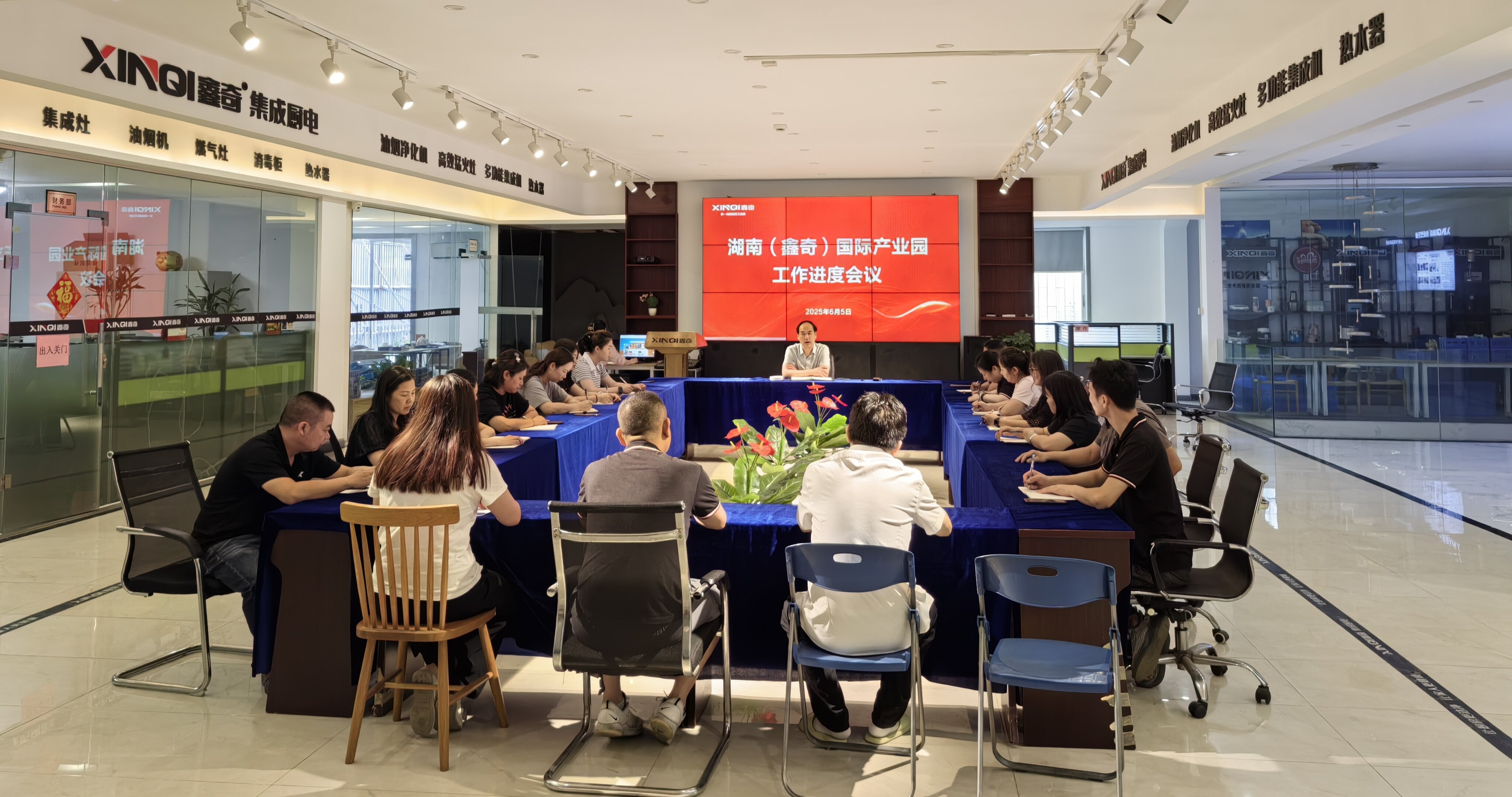 6月5日上午,鑫奇董事长付冬文在总部组织召开了湖南鑫奇国际智厨产业园工作进度会议,行政部、财务部、营销部、研发生产部、物流部、推广部、采购部主管等相关人员参会,为产业园的进一步建设做筹划部署安排,推动产业园快速发展。