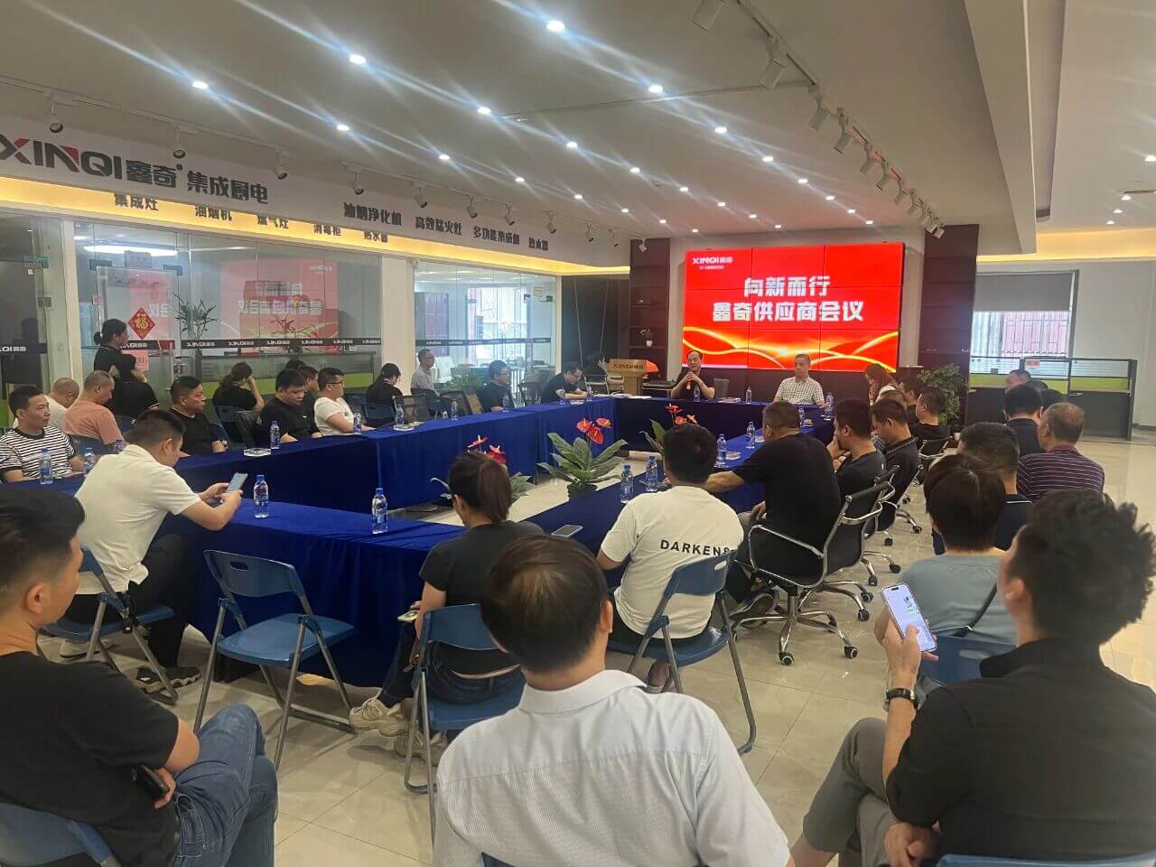 10月13日上午,鑫奇“向新而行”供应商会议在总部召开。鑫奇董事长付冬文主持,特邀供应商宁波市日安电器有限公司总经理陈小通与其他40多名供应商代表,以及鑫奇相关管理人员出席本次会议。本次会议旨在加强信任,明确结算规定,建立更加紧密的合作关系,携手并进共赢未来。